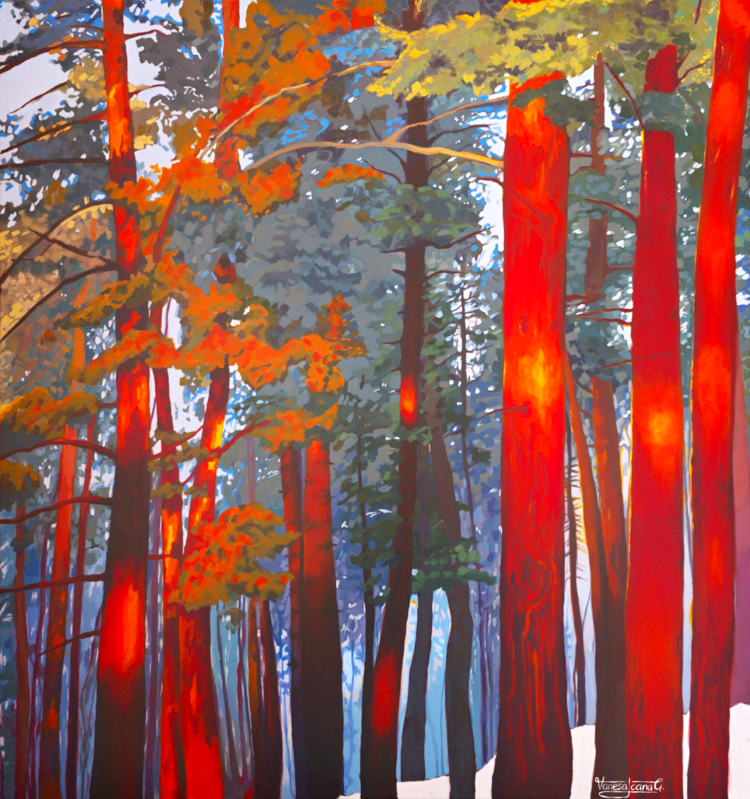Menininkas meistriškais potėpiais perkėlė į drobę neįtikėtiną gamtos priebėgą, pripildytą šilumos, ramybės ir priklausymo jausmo. Tai kvietimas pasinerti į stebuklingą pasaulį, kuriame galėsite pailsėti nuo kasdienybės ir atrasti vidinę ramybę. Tegul šis paveikslas papuošia jūsų namus ir kasdien primena apie gamtos grožį bei ramybę.